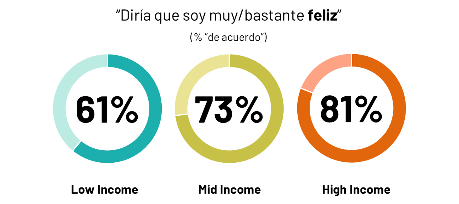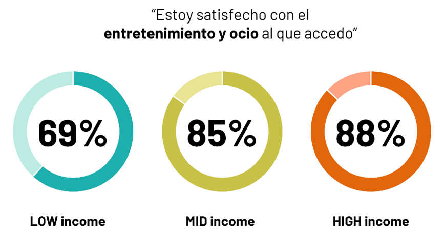La insatisfacción con la situación actual y las expectativas negativas tienen un impacto en su bienestar emocional: al ver su reducida su capacidad de maniobra, tener menos alternativas de elección y ver el futuro con incertidumbre, sentimientos de angustia y frustración los llevan asegurar que son menos felices que las personas de nivel medio o alto.