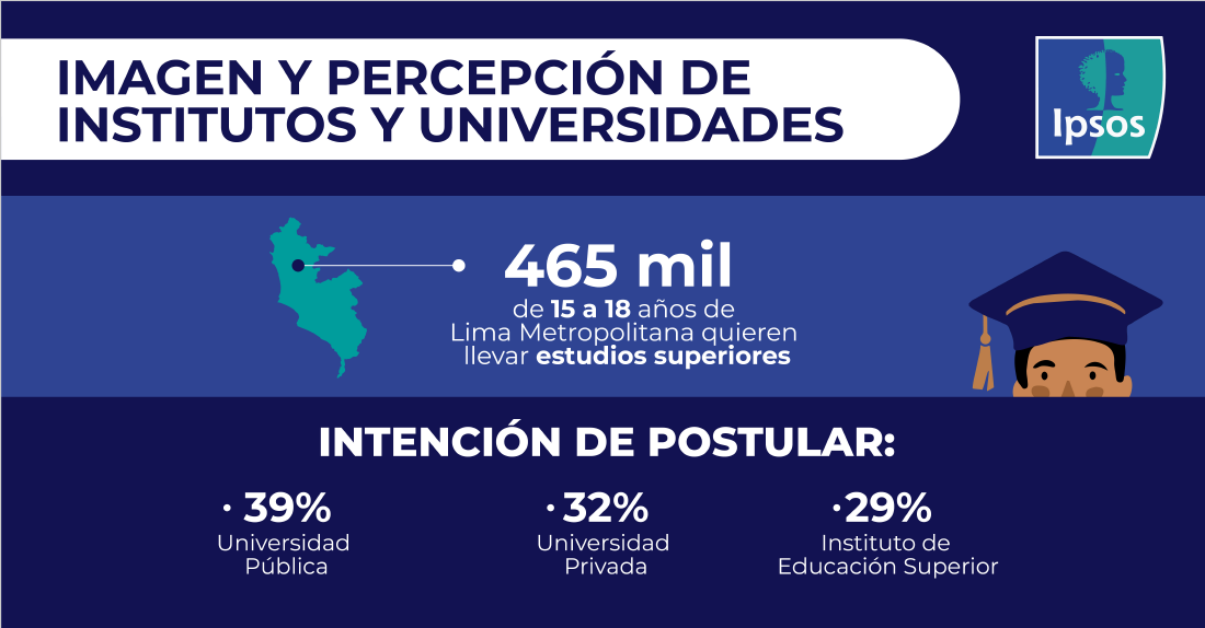 En Lima Metropolitana, se estima que 604 mil jóvenes de 15 a 18 años se encuentran estudiando, trabajando o desocupados, los cuales representan el público potencial. De ellos, el 77% tiene intención de llevar estudios superiores, es decir 465 mil jóvenes quieren estudiar. De este grupo, 39% quiere ir a una universidad pública, 32% a una universidad privada y 29% a un instituto superior.