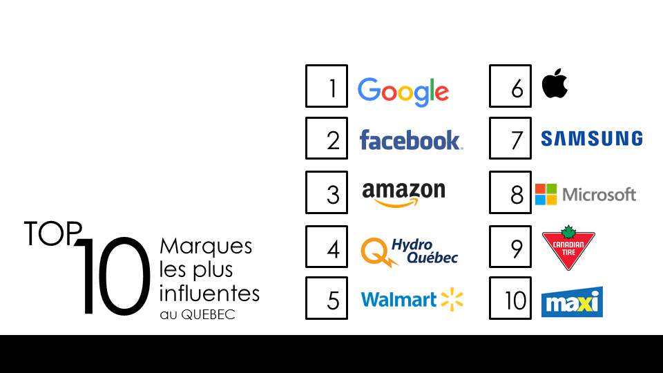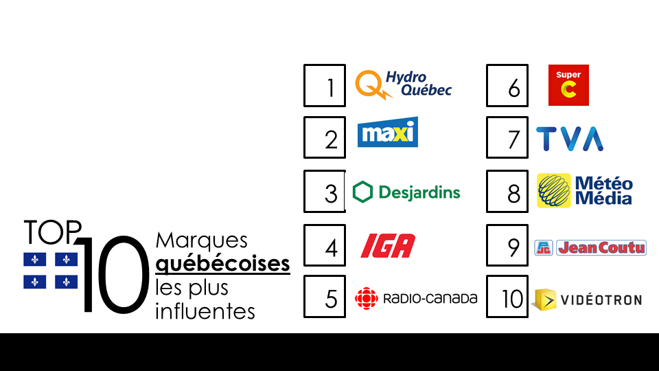 Il est temps de vous révéler notre Top-10 des marques les plus influentes au Québec (toutes origines confondues) ainsi que le Top-10 des marques québécoises les plus influentes :
