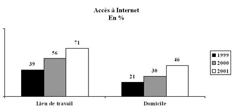 L'accès à Internet s'est fortement développé au sein de la population cadre et ce dans le cadre professionnel comme au domicile.