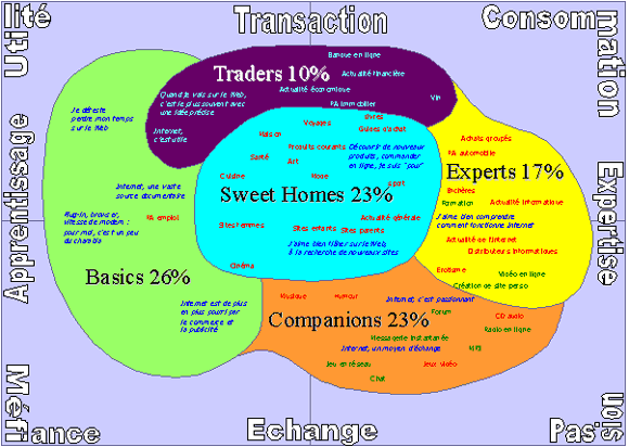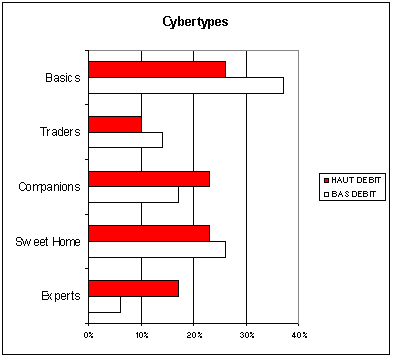 La catégorie des Basics regroupe des internautes de tous âges et toutes conditions. Le Basic se caractérise, essentiellement, par son peu d'ancienneté sur le WEB, sa moindre fréquence d'utilisation d'Internet, et un usage de l'Internet qui le rapproche du minitel. - Les Sweet Homes