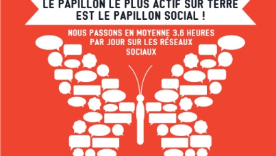 Nous passons en moyenne 3,6 heures par jour sur les réseaux sociaux.Les monarques peuvent papillonner sur des milliers de kilomètres par an, mais le plus actif de tous les papillons sur terre reste l’humain qui, sans bouger d'un pouce, passe des heures sur les réseaux sociaux tous les jours (parmi ceux qui les utilisent). Cela peut facilement représenter 25% du temps de veille de certains! Chaque jour, les moins de 35 ans consacrent en moyenne 4,2 heures au « réseautage social », les 35-49 ans, 3,1 heures et les plus de 50 ans seulement 2,8 heures. Aussi robustes que soient ses petites ailes, le papillon monarque ne pourrait couvrir toute l’étendu des réseaux sociaux du monde.