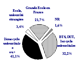 Au sein de la population diplômée d''études supérieures, la tendance des 5 dernières années est particulièrement en faveur des formations universitaires et des cursus courts. . bts, dut : + 44,4% Les formations scientifiques restent largement prépondérantes au sein de la population cadre. Pourtant, depuis 5 ans, les cadres s''orientent davantage vers les grandes écoles commerciales. . grandes écoles scientifiques : + 6,5% Les formations à l''étranger (université ou grandes écoles) ont le vent en poupe: + 35,1% sur la période. |