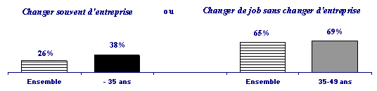 Deux tiers des cadres sont pour la stabilité dans l''entreprise et plus encore chez les 35-49 ans. Un quart des cadres opte pour le changement. |