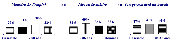 Un tiers des cadres est préoccupé par le maintien de son emploi. Un autre tiers se préoccupe de son niveau de salaire. Le dernier tiers s''inquiète du temps consacré à son travail. |