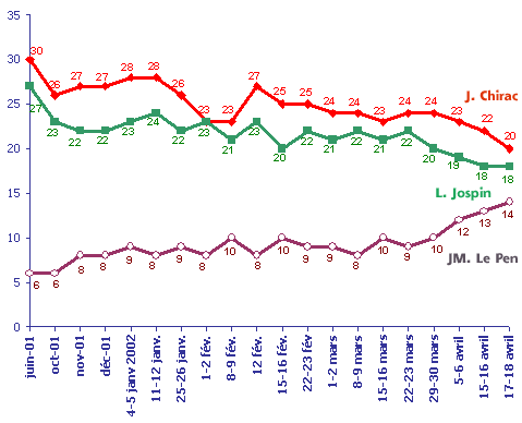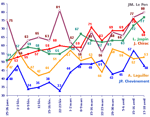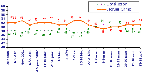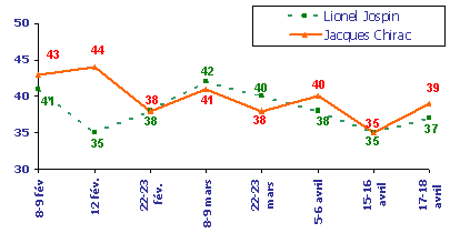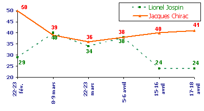 Jospin | 48 | 48 | 48 | 49 | 49 | 47 | 47 | 49 | 50 | 51 | 50 | 50 | 49 | 49 | 49 | 49 | Jospin |