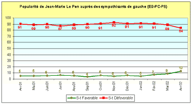 Popularité de Jean-Marie Le Pen auprès des sympathisants de gauche (EG-PC-PS)