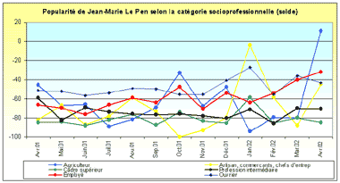 Popularité de Jean-Marie Le Pen selon la catégorie professionnelle (solde)