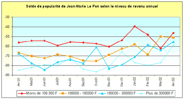Solde de popularité de Jean-Marie Le Pen selon le niveau de revenu annuel