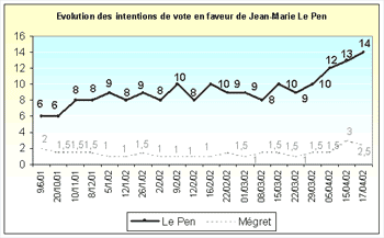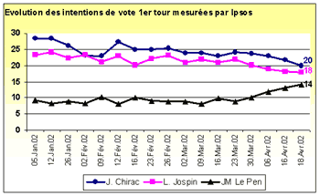 Evolution des intentions de vote Chirac / Jospin / Le Pen