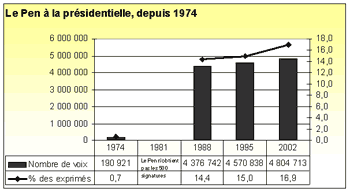 Le Pen 2002 montre désormais sa capacité à recruter au-delà la sphère d'influence traditionnelle du Front National. On note ainsi que près de 20% de l'électorat de la droite RPR-UDF des législatives de 1997 a choisi de voter Le Pen le 21 avril dernier ; 13% des électeurs d'Edouard Balladur de 1995 ont voté Le Pen en 2002. Et au-delà de la droite, les scores de Jean-Marie Le Pen parmi les sympathisants de gauche ne sont pas non plus négligeables : 7% d'entre eux ont voté pour lui le 21 avril.
