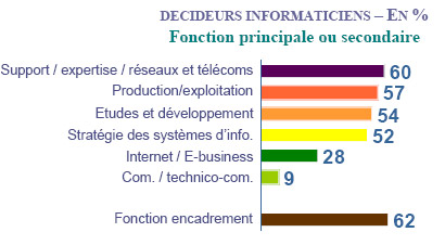 Ces décideurs ont pour la grande majorité des responsabilités managériales : 62% des informaticiens et 72% des décideurs non-informaticiens exercent une fonction d'encadrement.