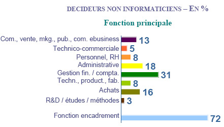 A noter que 16% de ces non-informaticiens exercent une fonction dédiée aux achats et que 18% exercent une fonction organisée autour de la vente (commercial, marketing, communication, technico-commercial).