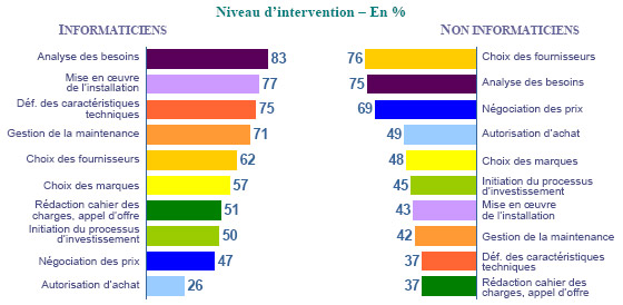 Les non-informaticiens interviennent lors d'étapes plus « commerciales » : le choix des fournisseurs (76%), la négociation des prix (69%), l' autorisation d'achat (49%).