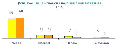 Plus spécifiquement dans l'évaluation des situations financières des entreprises, Internet arrive en seconde position, compte tenu du nombre de sites Web apportant ce type d'information.