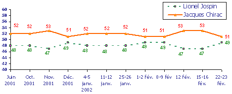 Pronostic de victoire pour l'élection présidentielle entre Lionel JOSPIN et Jacques CHIRAC