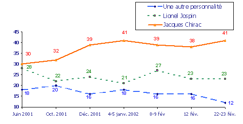 La prochaine élection présidentielle aura lieu en 2002. Si celle-ci se déroulait dimanche prochain et si vous aviez le choix entre les candidats suivants, quel serait celui pour lequel il y aurait le plus de chances que vous votiez au premier tour?