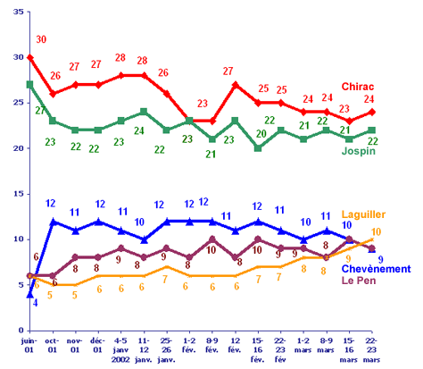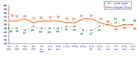| Rappel Le Figaro/Europe 1 – 15-16 mars 2002 | 53 | 47 | 100 |