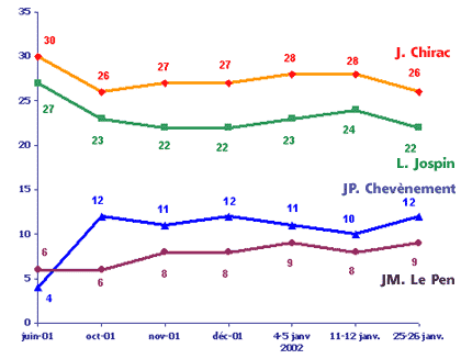 La prochaine élection présidentielle aura lieu en 2002. Si celle-ci se déroulait dimanche prochain et si vous aviez le choix entre les candidats suivants, quel serait celui pour lequel il y aurait le plus de chances que vous votiez au premier tour?
