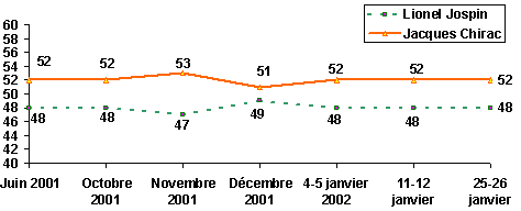 La prochaine élection présidentielle aura lieu en 2002. Si celle-ci se déroulait dimanche prochain et si vous aviez le choix entre les candidats suivants, quel serait celui pour lequel il y aurait le plus de chances que vous votiez au second tour ?