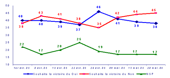 | Souhaite la victoire du « Oui » | 38 | - | 39 | 36 | 63 | 64 | 8 | 92 | 1 | 27 |