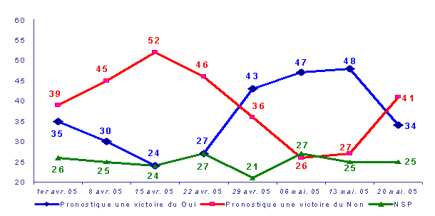 | Pronostique une victoire du « Non » | 41 | 81 | 38 | 44 | 37 | 30 | 53 | 18 | 68 | 28 |