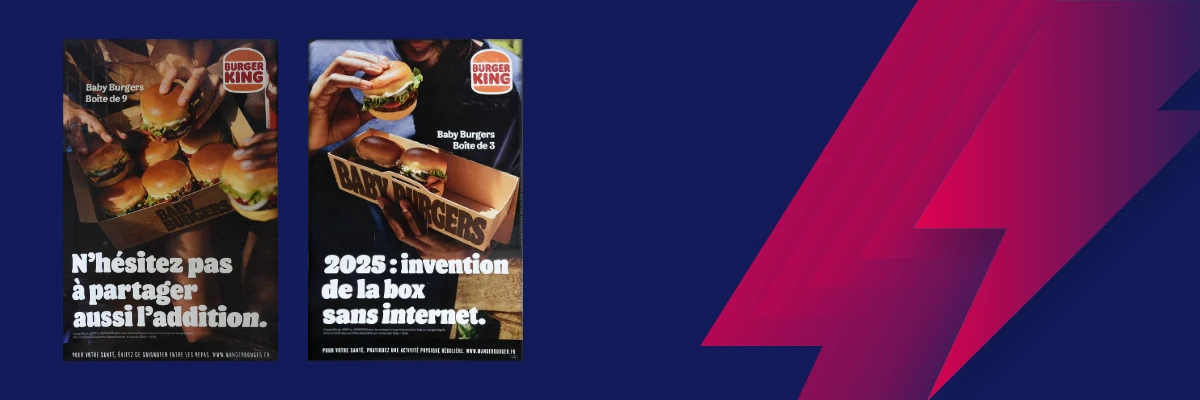 Par 3 ou par 9, les burgers iconiques de la marque existent maintenant en version mini : « Imaginez le Whopper, le Chicken Louisiane Steakhouse et le Big King emmitouflés dans un petit pain brioché ». À la fois au nom de la praticité et d’aspects économiques en phase avec les préoccupations des Français (« N’hésitez pas à partager aussi l’addition »), la campagne est particulièrement dans l’air du temps.