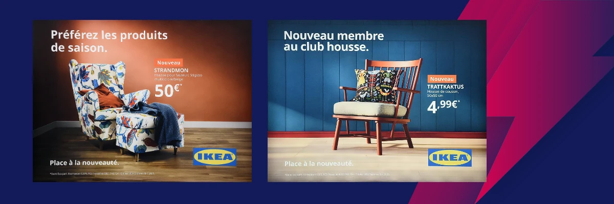 Ikea capitalise toujours avec succès sur ses affiches bien conçues. Un nom de lieu suédois exotique, un prix, un produit, un jeu de mot. Ici, la designer Eva Lundgreen s'est inspirée de la nature et du folklore suédois pour créer cette housse de coussin qui représente une femme et un homme vêtus de costumes traditionnels.