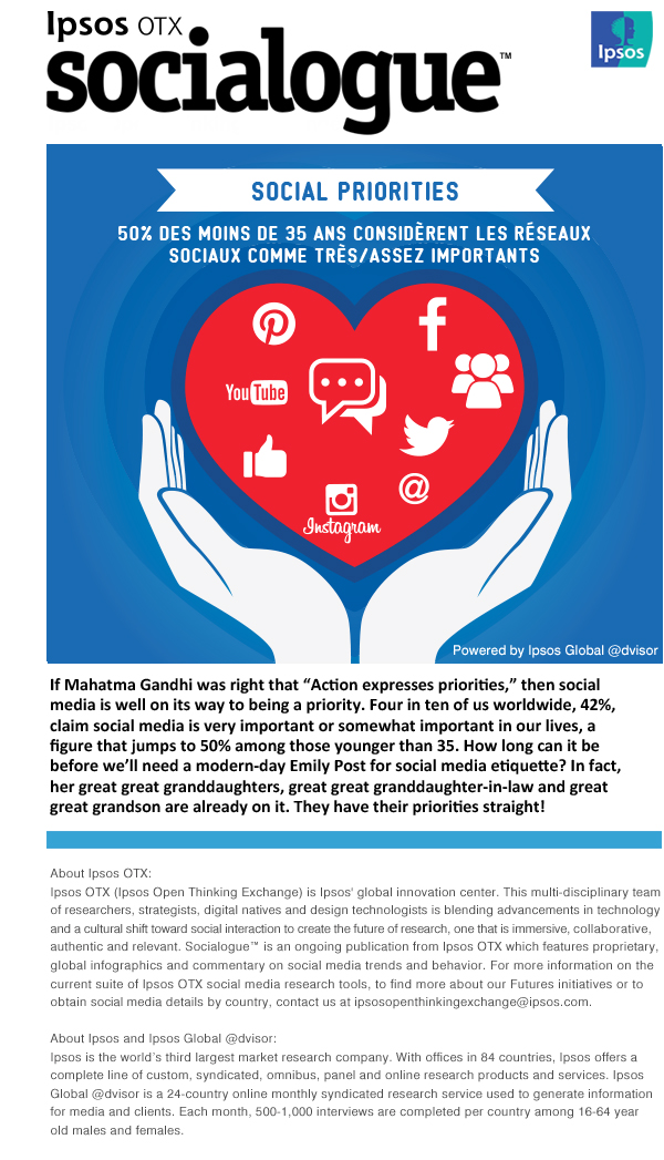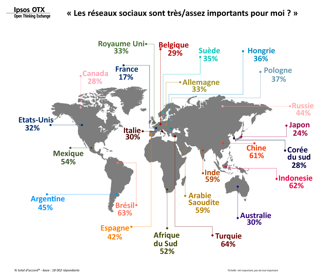 Si 42% des sondés à l’échelle mondiale citent les réseaux sociaux comme une priorité, les Français ne semblent pas partager cet intérêt commun, en effet, pour 47% d’entre eux les réseaux sociaux ne sont pas importants. Le faible attrait pour les réseaux sociaux, nouvelle exception culturelle française ?