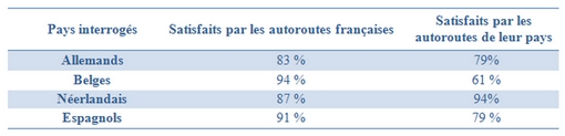 Lorsque l’on demande clairement aux utilisateurs venant des pays limitrophes de comparer les autoroutes françaises et celles de leurs pays respectifs, les autoroutes françaises sont majoritairement considérées supérieures ou comparables.
