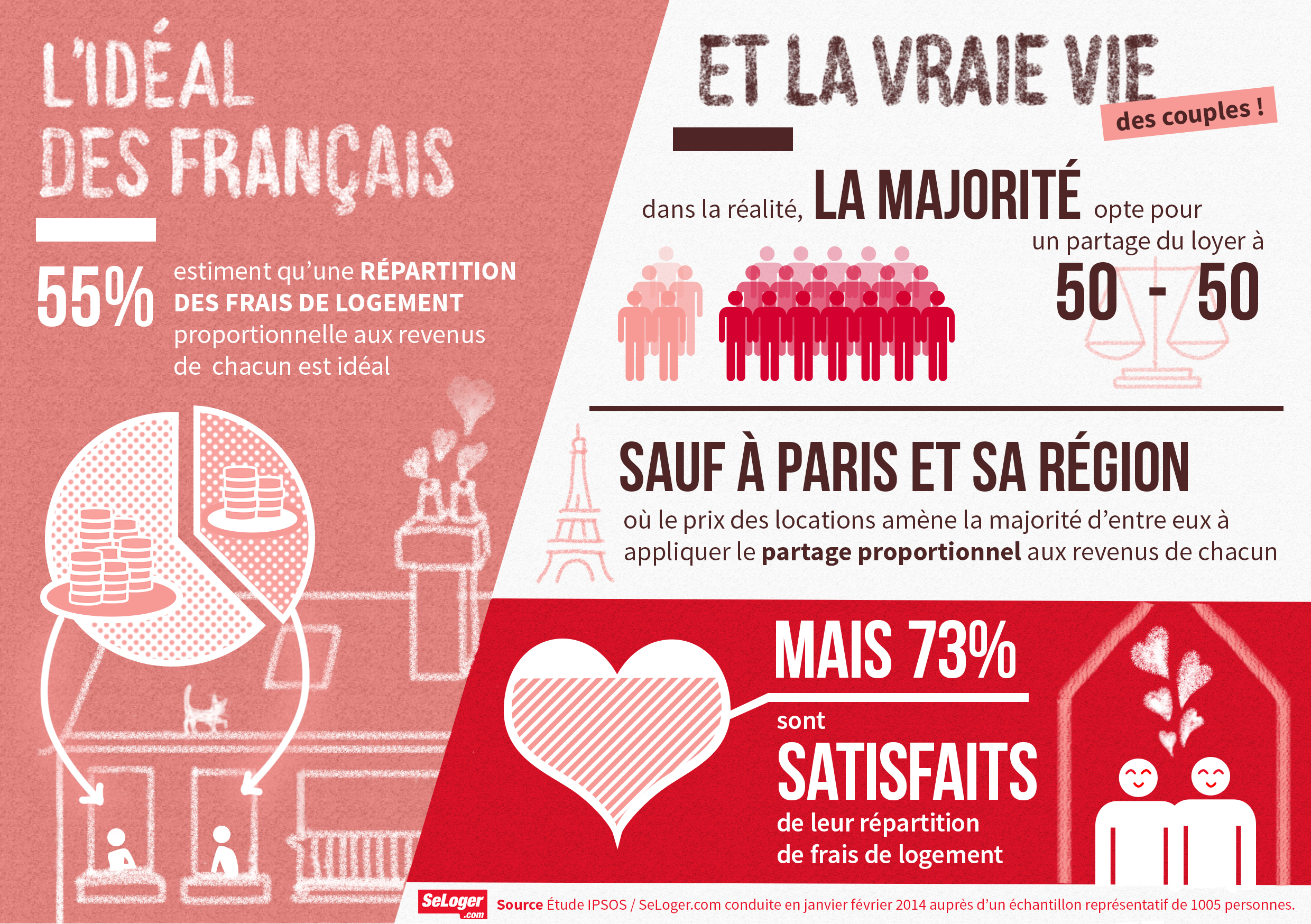 Karine Reffet, Porte-parole du groupe SeLoger.com apporte quelques explications : « Vivre à Paris en location est presque 3 fois plus cher qu’à Lyon (31€ le m² à Paris, 11€ à Lyon (3)). Les couples franciliens sont contraints d’adopter un mode de fonctionnement où chacun participe autant qu’il peut ».