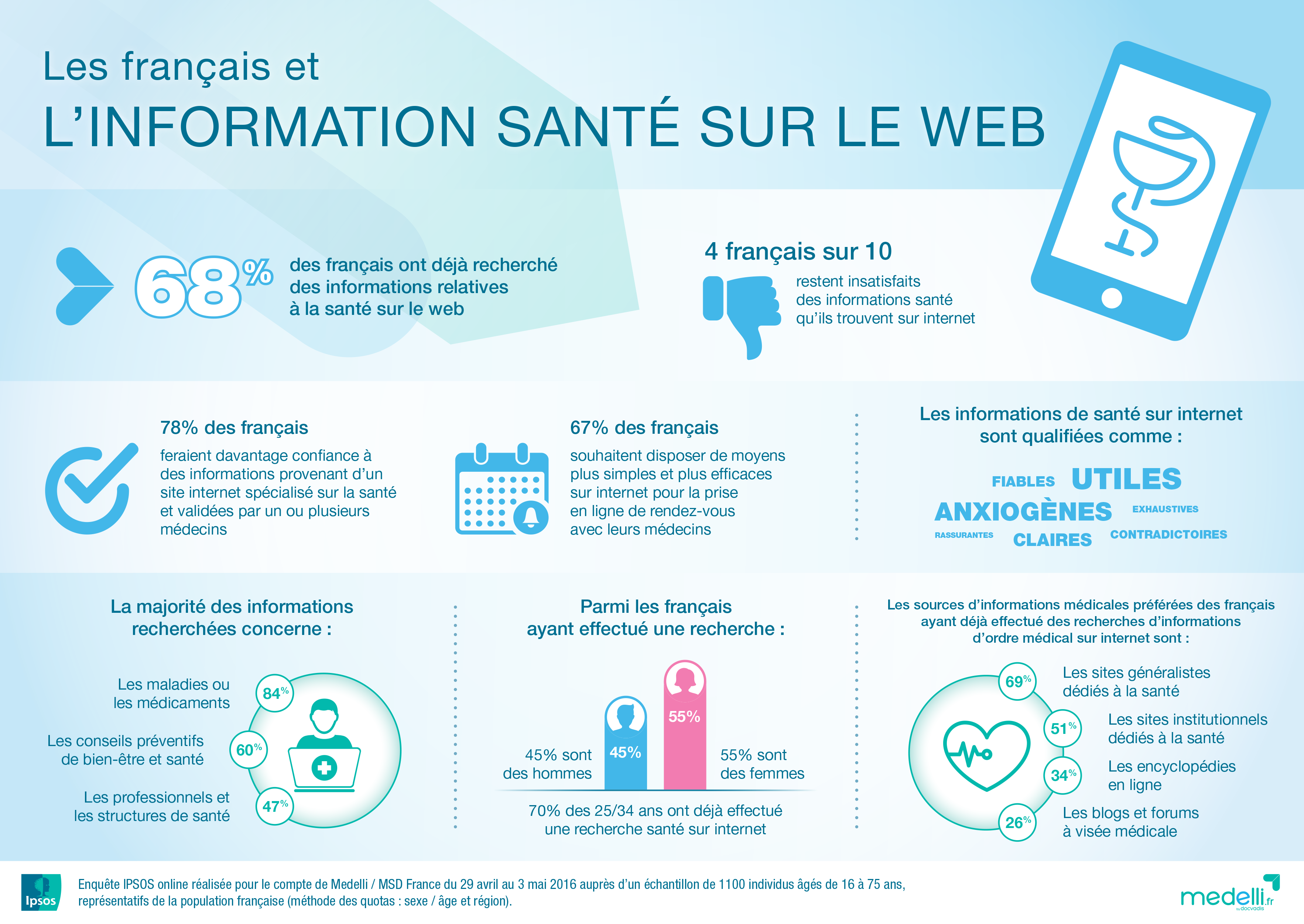 Dans un monde de santé de plus en plus connecté et digitalisé, 4 français sur 10 restent insatisfaits des informations santé qu’ils trouvent sur internet. A la veille du lancement par le laboratoire pharmaceutique MSD d’une nouvelle plateforme digitale d’information médicale, le groupe et Ipsos se sont intéressés aux usages et attentes des Français à l’égard des informations médicales trouvées sur internet.