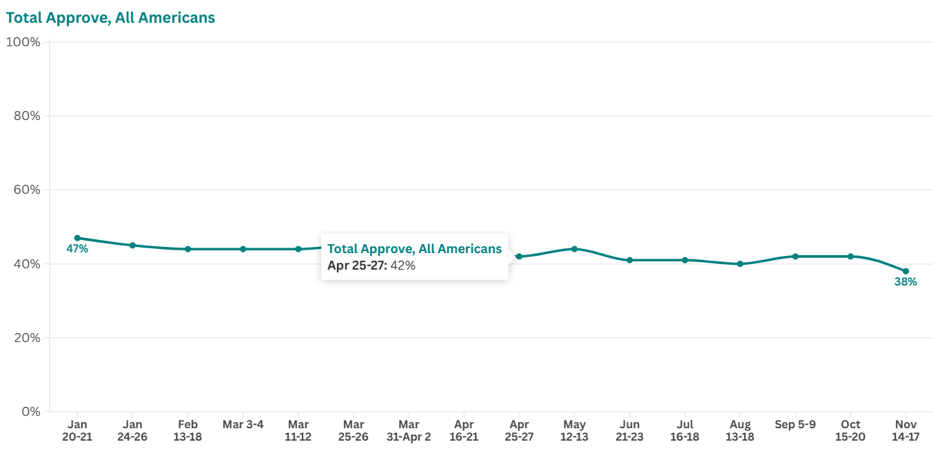 Dopo mesi di stabilità, cala il gradimento complessivo di Trump
