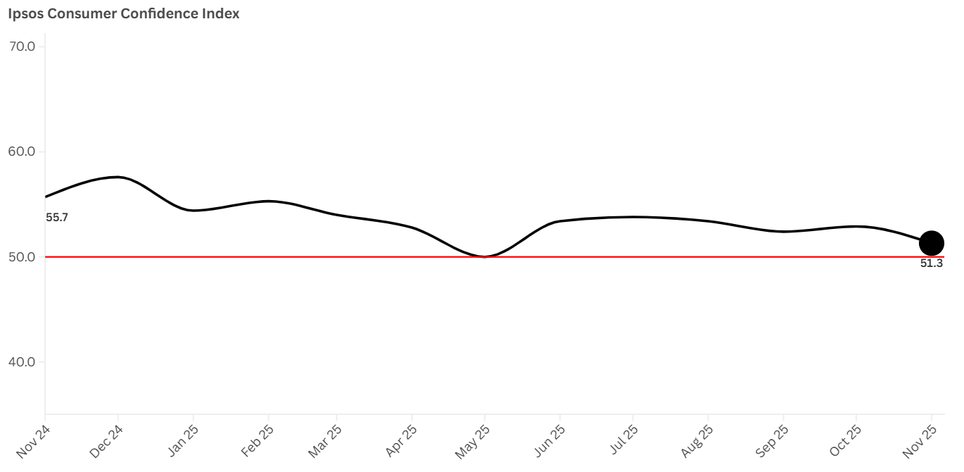 Secondo l'indice LSEG/Ipsos Primary Consumer Sentiment Index, la fiducia degli americani nell'economia è in calo, con una flessione di 4,4 punti rispetto allo stesso periodo dell'anno scorso. Ciò è dovuto in particolare a un forte calo della fiducia nel futuro dell'economia, che ha registrato una flessione ancora più marcata, pari a 9,4 punti rispetto allo scorso anno.