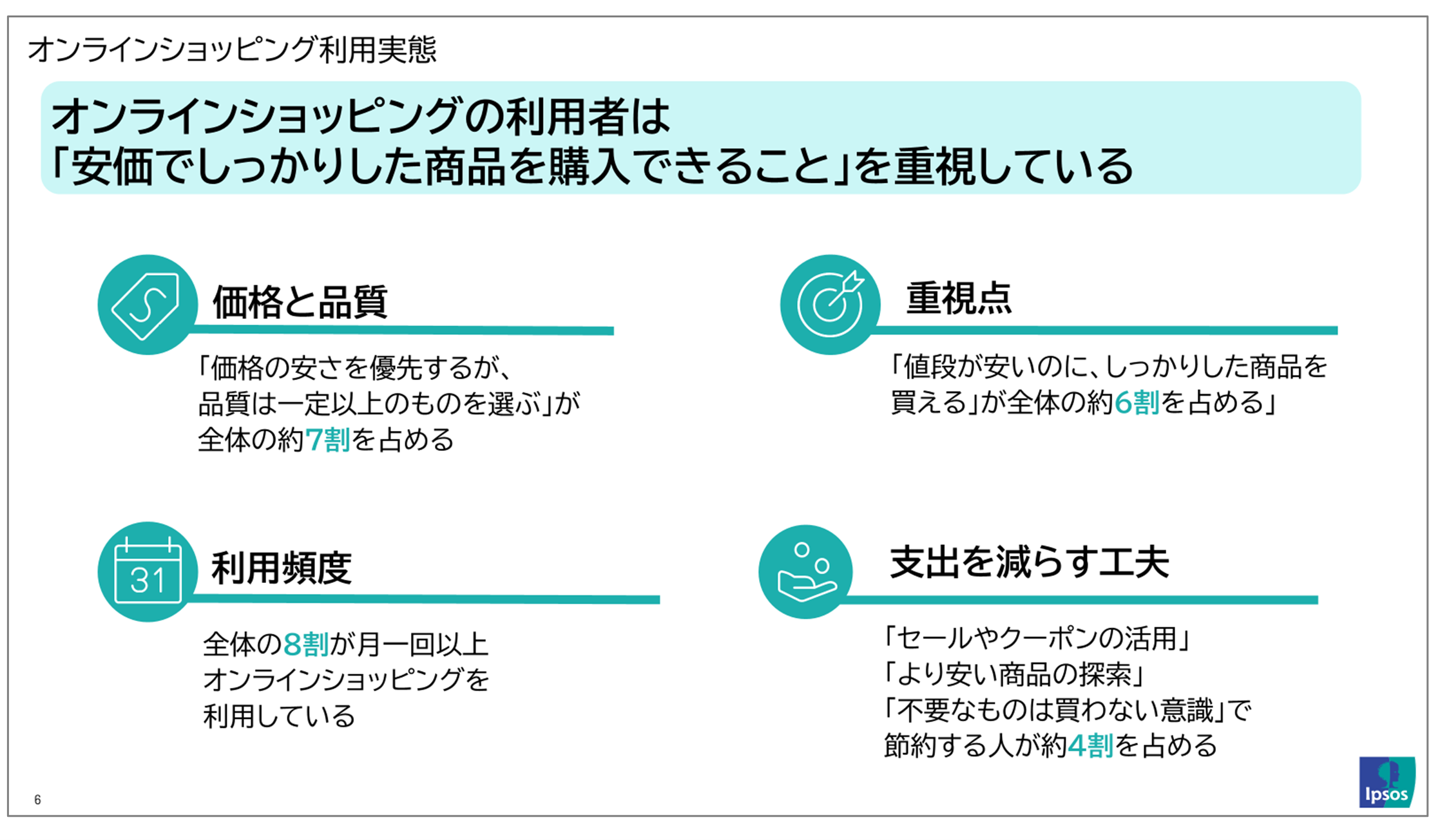 本調査を通じて、オンラインショッピングが単なる価格競争の場ではなく、「価格と品質のバランス」を見極めながら生活の質を高める手段として利用されていることが明らかになりました。