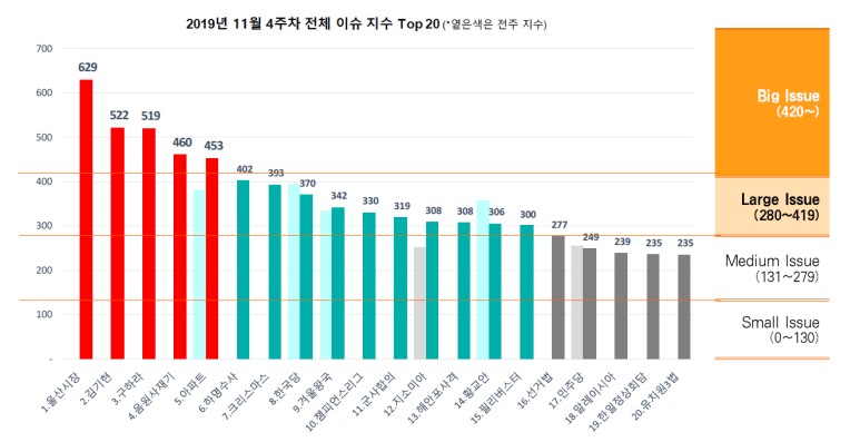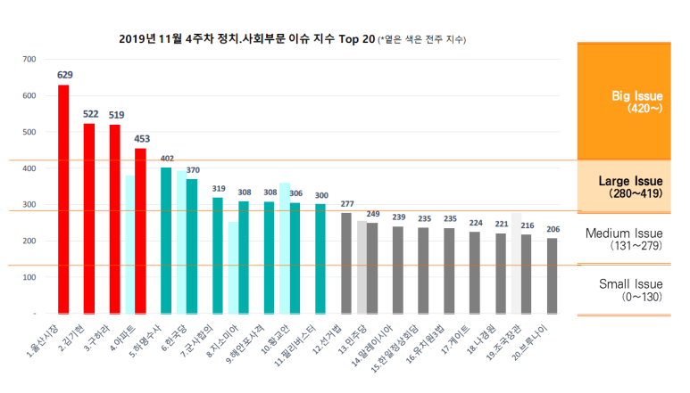 Ο 기획 소셜 이슈 지수 : '19년 11월 4주차 Ο