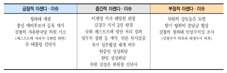 - 첫번째 점선 밑 내용은 당초 예상에서 달라진 아젠다․이슈의 변동 방향을 의미함