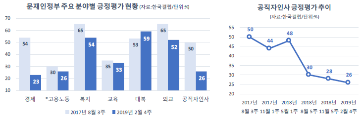 만약 국정지지도를 높여 국민의 이름으로 자유한국당을 압박하고 견인하고자 한다면 이번 개각에 신중을 기해야 했으나 그럼에도 불구하고 민심과 괴리된 개각을 단행한 것은 정치적으로 모순된 행동으로, 결국 하노이 북․미 정상회담 합의 무산 이후 변화된 상황에 따른 새로운 국정 로드맵을 마련치 못한채 과거 로드맵을 고집하면서 모순적인 행동이 만들어지고 있다는 분석이다.