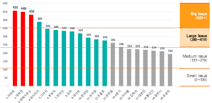승리 관련 파문은 경찰조사가 뚜렷한 진전이 없으면서, 승리 외에는 관심도가 낮아져 추후 경찰유착 관련 의혹 등에 대한 조사가 진전이 있을 경우 다시 부각될 것으로 보인다.