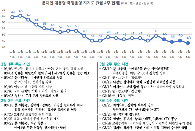 [국정운영 지지도, 횡보 끝에 하락세로 3월 마감]