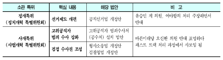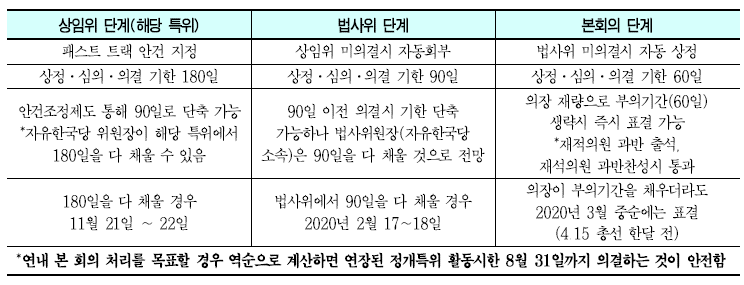 ❍ 정개특위와 사개특위가 중요한 이유는 지난 번 패스트 트랙(신속처리안건)에 태운 법안을 다루고 있기 때문임