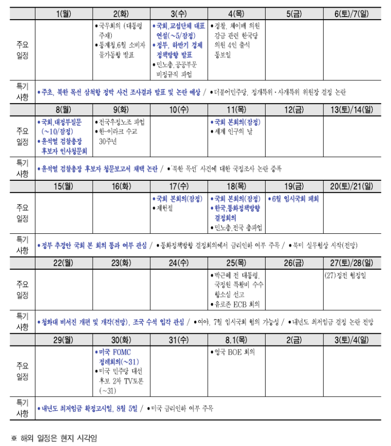 ■ 7월 주요 일정 및 흐름 전망 |