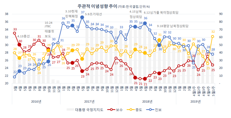 · 이는 문재인 정부에 실망한 국민들이 문재인 정부에 대한 태도를 바꾸면서 자신의 이념성향도 재정립한 것으로 분석됨