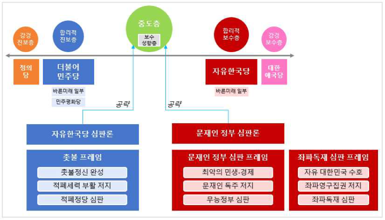 · ‘문재인 정부 심판’ 프레임은 문재인 정부 실정을 부각하면서 무능정부를 심판하자는 메시지가 주를 이룰 것임