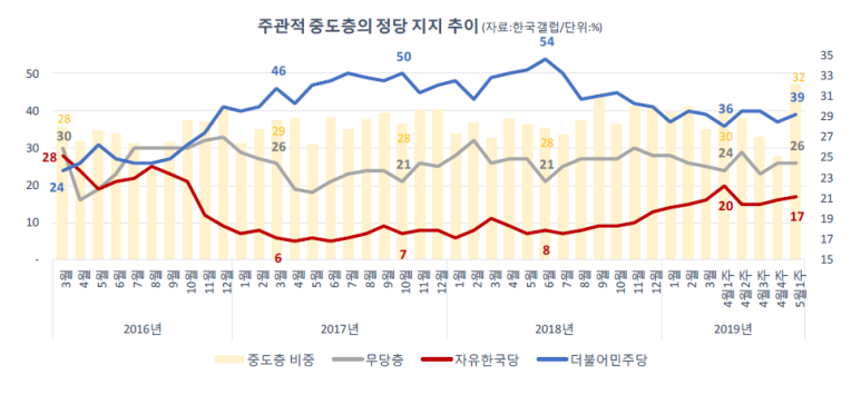 · 내년 총선에서 자유한국당이 승리하기 위해서는 반드시 중도층을 흡수해야 함
