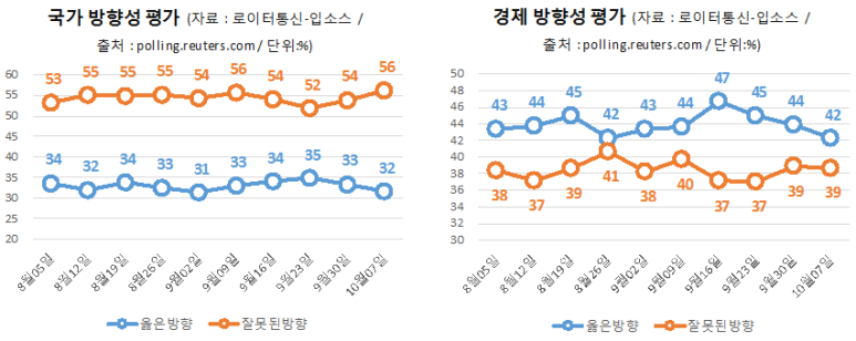 경제호전 등 경제방향성에 대해서는 긍정평가가 소폭 높음에도 불구하고 국가방향성에 대해서는 부정평가가 높은 것으로 나타나 트럼프 대통령에 대한 부정평가가 많은 것은 미국이 ‘잘못된 방향’으로 가고 있다는 생각이 강해서인 것으로 분석된다.