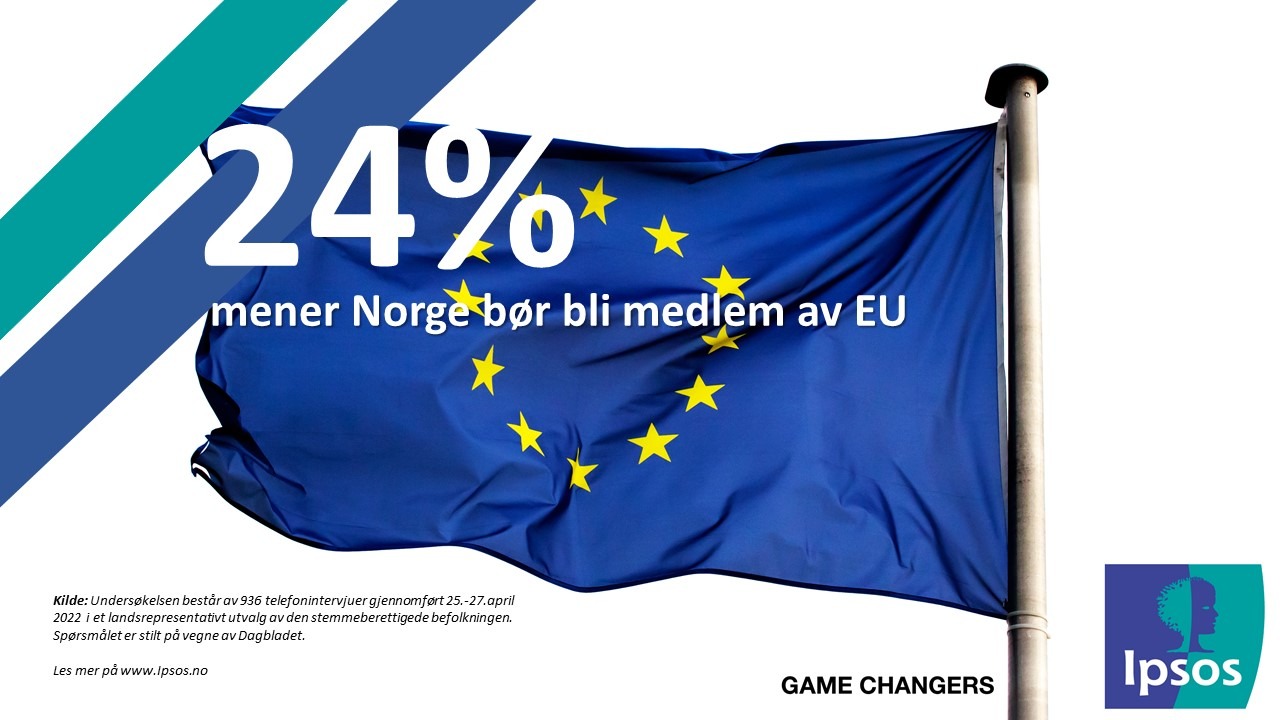 På spørsmål om hvilket standpunkt den norske befolkningen har til norsk EU-medlemskap svarer 24 % at de mener Norge bør bli medlem av EU. Det er 48 % som mener Norge ikke bør bli medlem av EU, og 28 % som ikke har tatt noe standpunkt til dette spørsmålet.