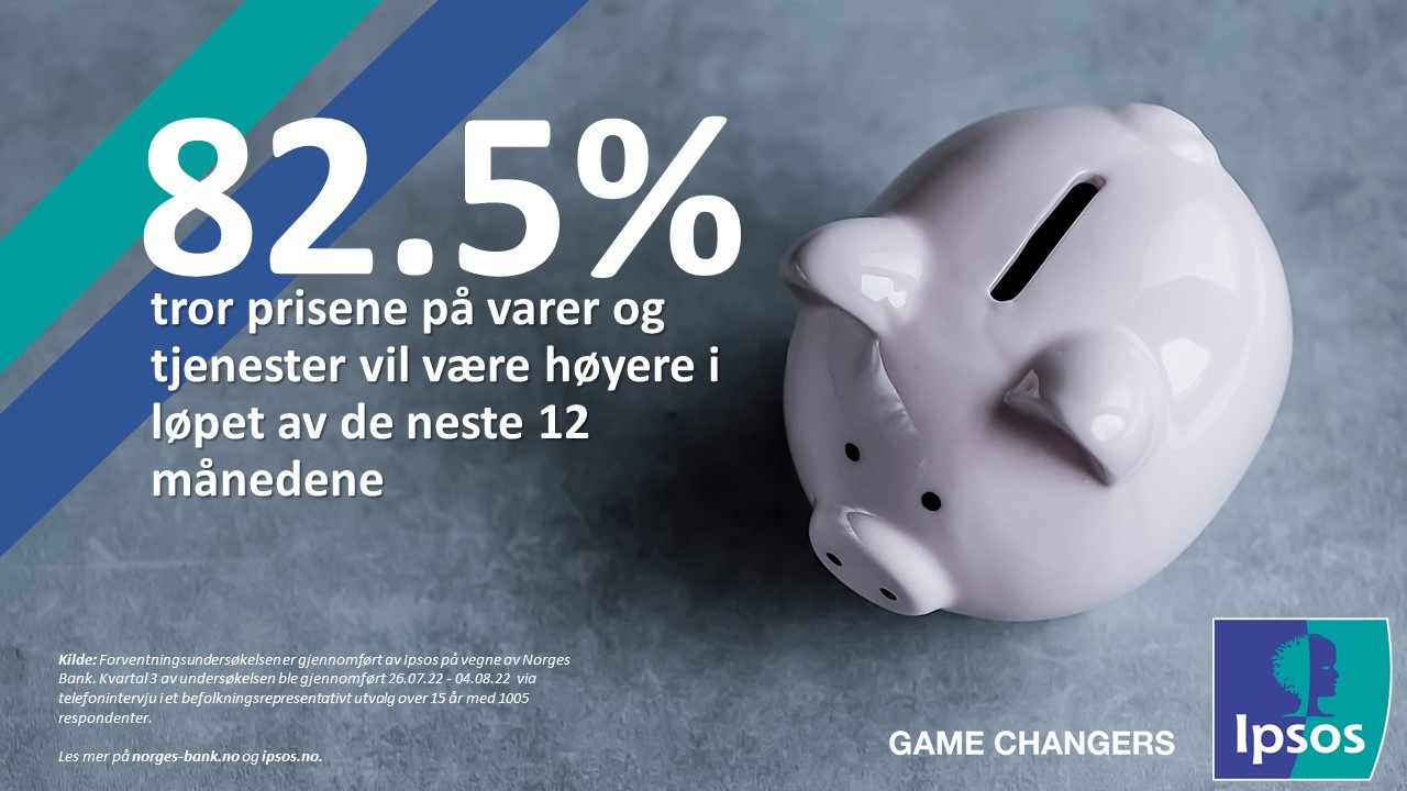 I den nyeste Forventningsundersøkelsen som publiseres i dag svarer 82.5 % av befolkningsutvalget at de tror prisene på varer og tjenester, målt ved konsumprisindeksen, vil være høyere i løpet av de neste 12 månedene sammenlignet med i dag.