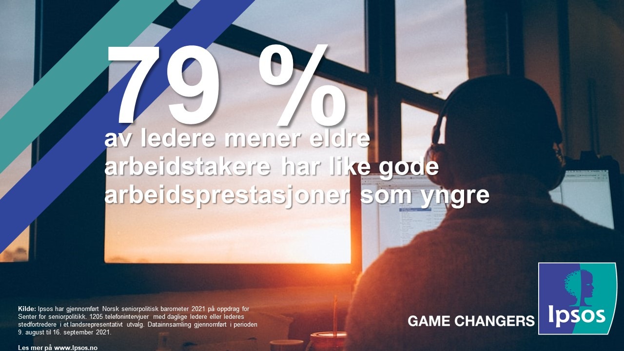 Ledere har positive oppfatninger om seniorers arbeidsprestasjoner. Nær 8 av 10 ledere er helt eller delvis enig i at de over 60 år har minst like gode arbeidsprestasjoner som de under 60 år, men dette er en nedgang på 7 prosentpoeng fra forrige måling i 2019. Om undersøkelsen: