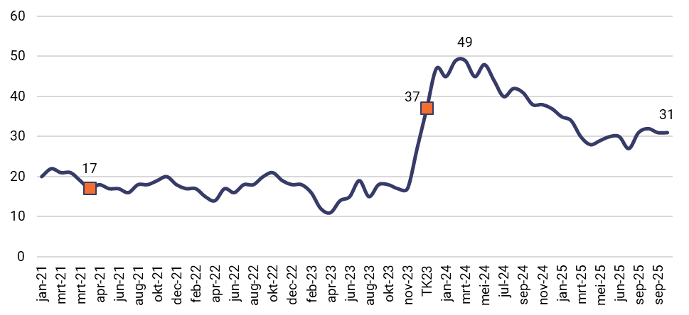 Markering = TK-verkiezingen van maart 2021 en november 2023.